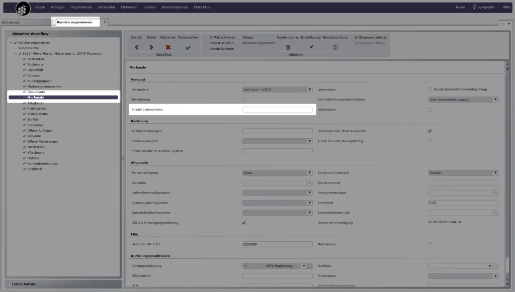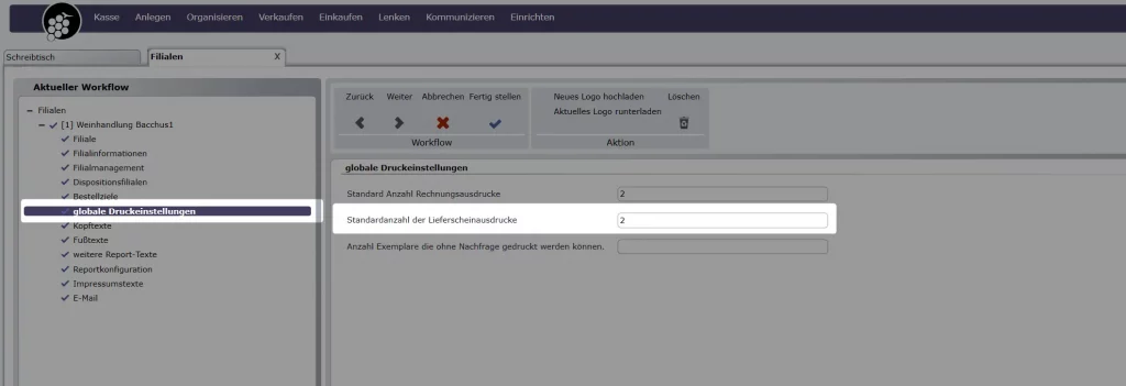 Der Standardwert ist 1, wenn Sie grundsätzlich nur 1 Exemplar Ihres Lieferscheins drucken möchten, sind keinerlei Änderungen erforderlich.